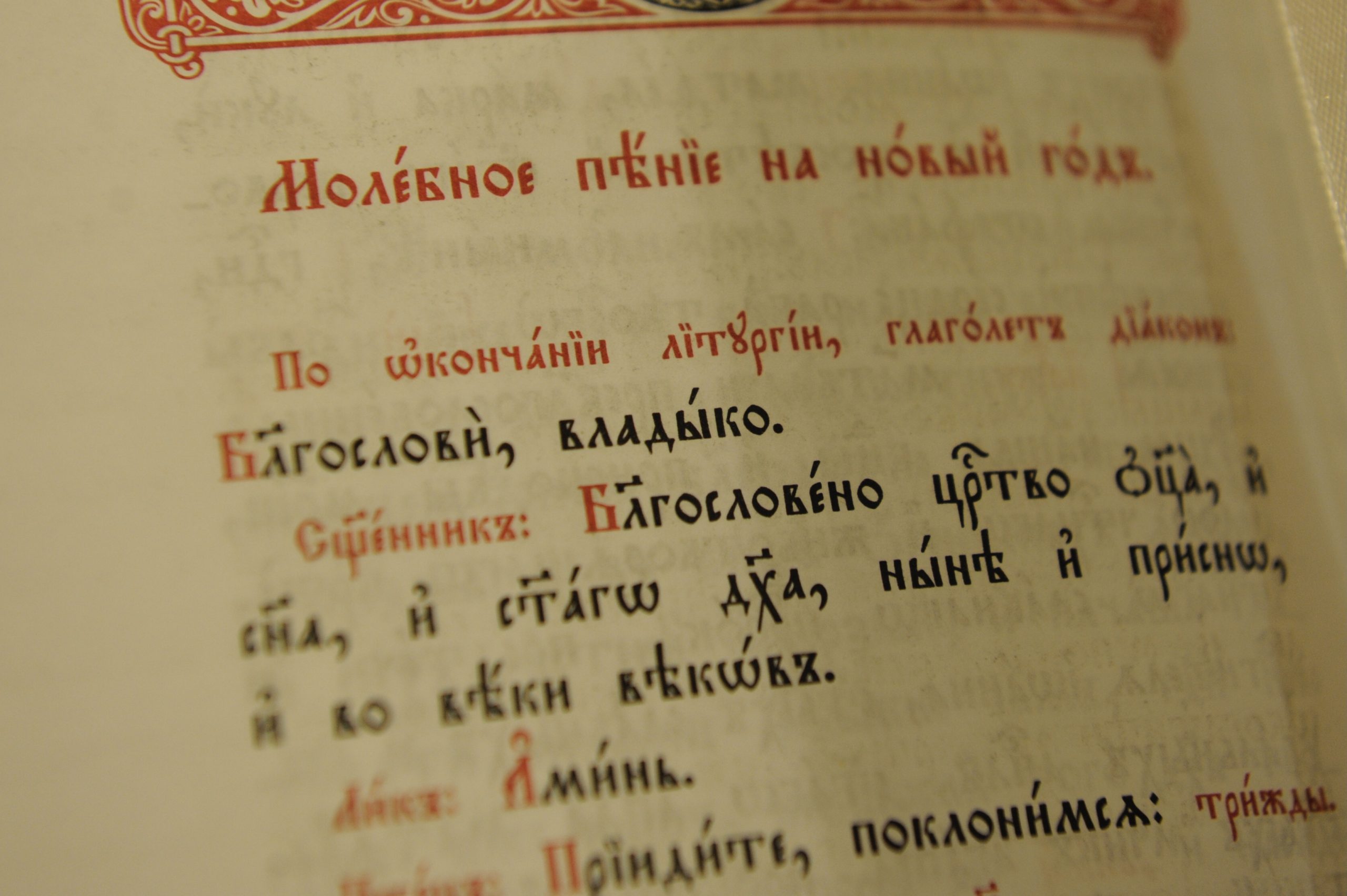 Владыко Господи Боже наш, Источниче жизни и безсмертия, всея твари видимыя и невидимыя Содетелю, времена и лета во Своей власти положивый, и управляяй всяческая премудрым и всеблагим Твоим Промыслом. Благодарим о щедротах Твоих, яже удивил еси нас в мимошедшее время живота нашего, молим Тя, всещедрый Господи! Благослови венец наступающего лета Твоею благостию. Подаждь свыше благая Твоя всем людем Твоим, здравие же, спасение и во всем благое поспешение. Церковь Твою Святую, град сей и вся грады и страны от всякаго злаго обстояния избави, мир и безмятежие тем даруй. Тебе, Безначальному Отцу, со Единородным Твоим Сыном, Всесвятым и Животворящим Твоим Духом, во Едином Существе славимому Богу, всегда благодарение приносити, и Пресвятое Имя Твое воспевати да сподобиши: слава Тебе, Богу, Благодателю нашему, во веки!