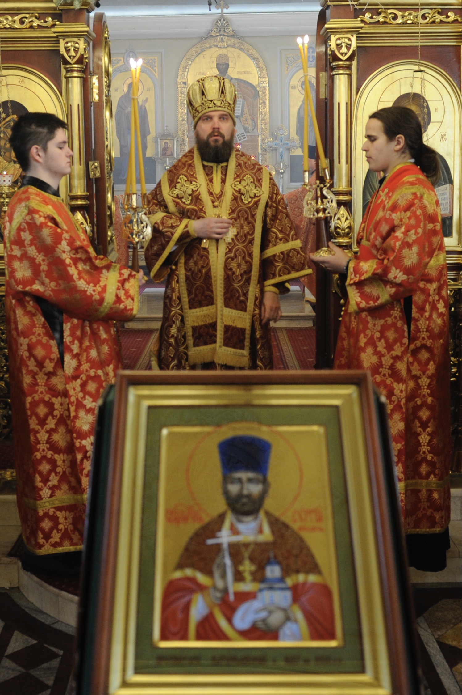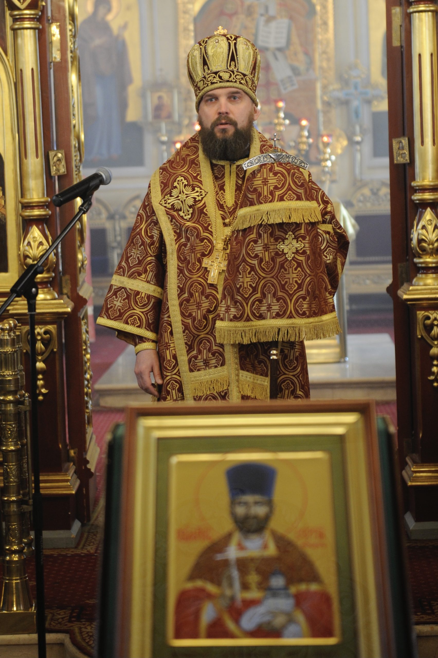 По окончании литургии настоятель храма обратился к Владыке Арсению с приветственным словом, в котором поблагодарил архипастыря за участие в молитвенном прославлении новомученика. Отец Михаил отметил, что почитание священномученика Сергия на приходе проистекает из глубин верующих сердец прихожан — зримым свидетельством тому является икона священномученика Сергия, написанная по личной инициативе одной из прихожанок — участницей приходского иконописного кружка. Эта икона была выставлена на середине храма для поклонения в этот день.